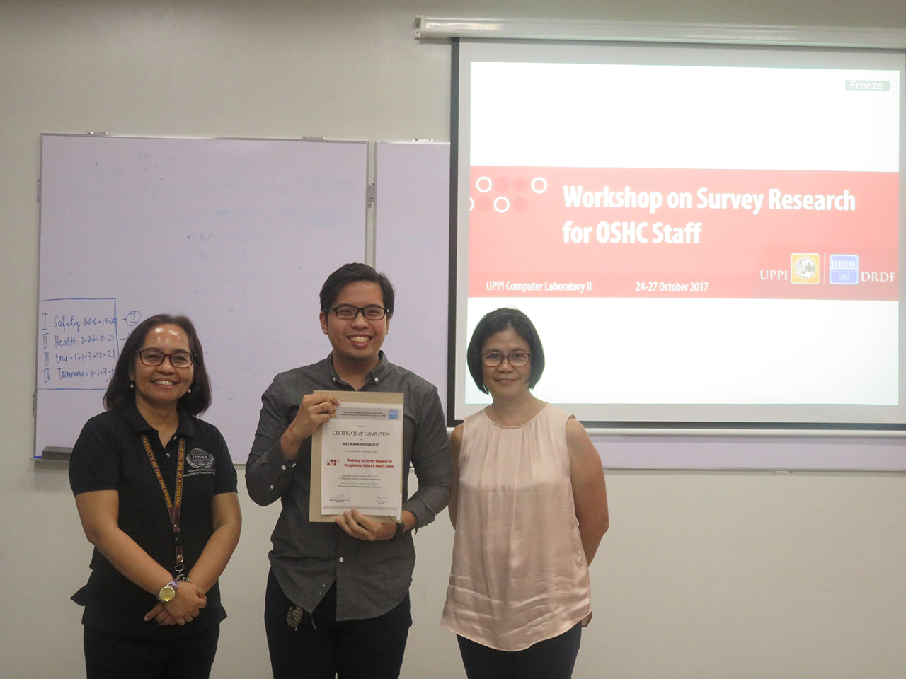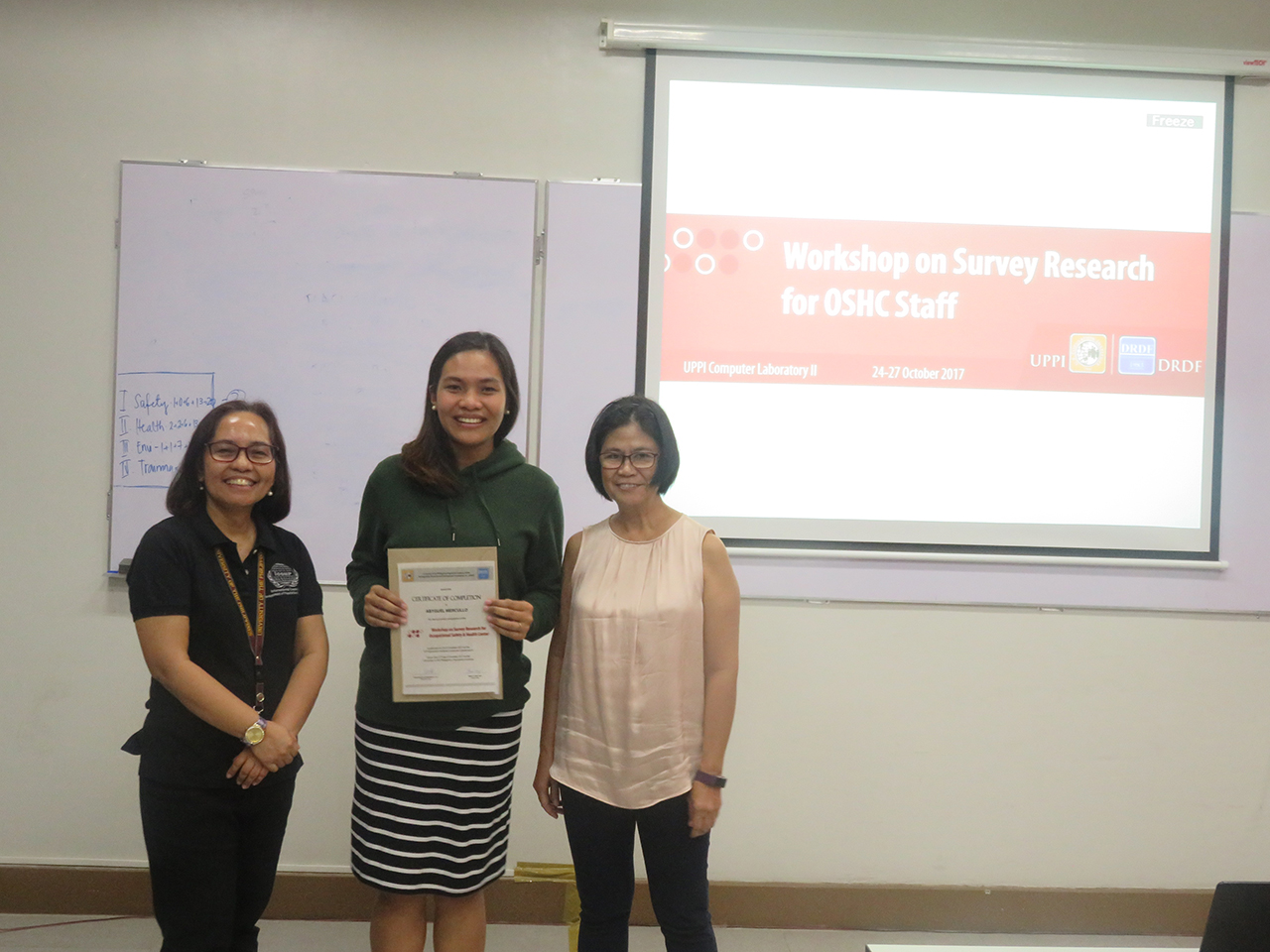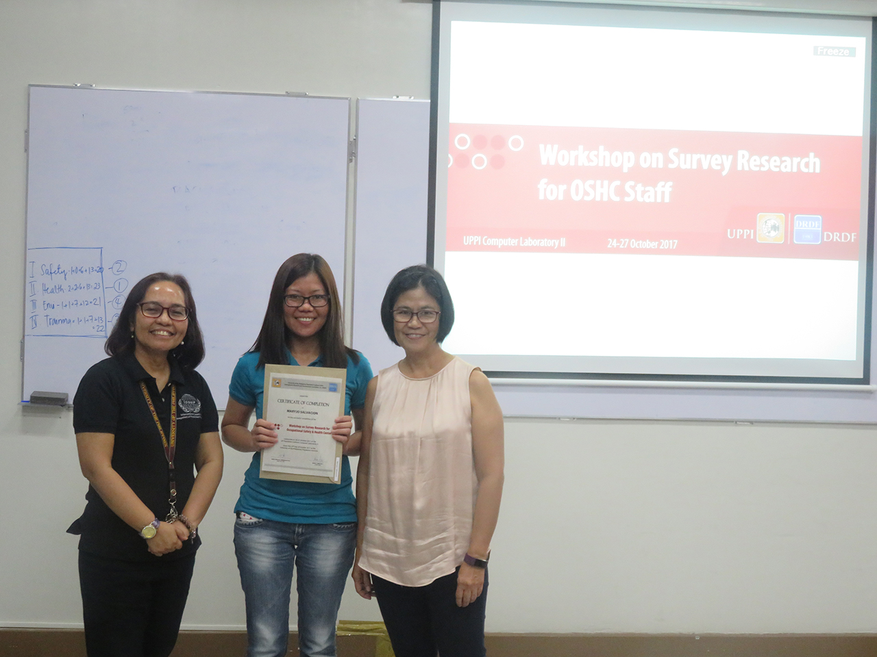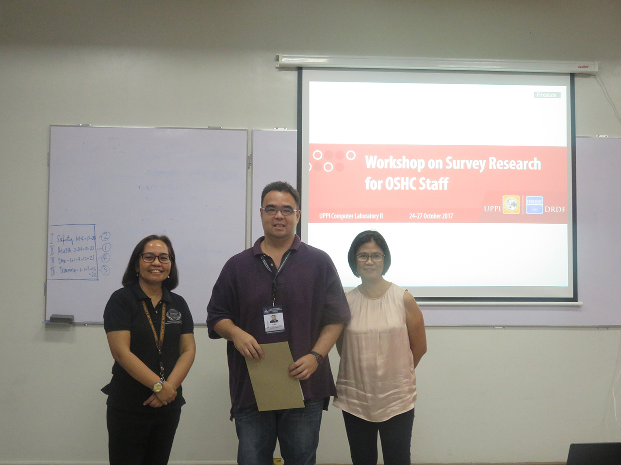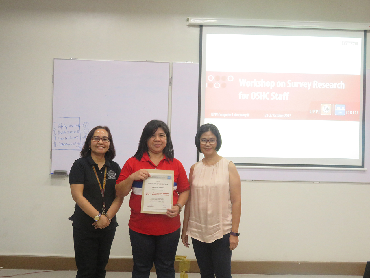 2017 – Workshop on Survey Research for Occupational Safety and Health Center (OSHC) Staff You are here: Home » Photos » 2017 – Workshop on Survey Research for Occupational Safety and Health Center (OSHC) Staff March 20, 2023October 17, 2017 by DRDF Workshop on Survey Research for Occupational Safety and Health Center UPPI Computer Laboratory | October 24-27, 2017